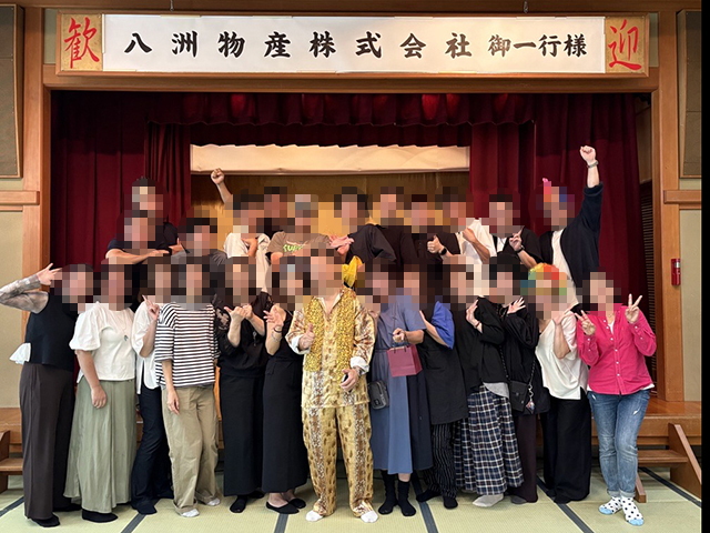 夜の宴会では、幹事が趣向を凝らした企画で大いに盛り上がり、笑顔あふれる時間となっています。